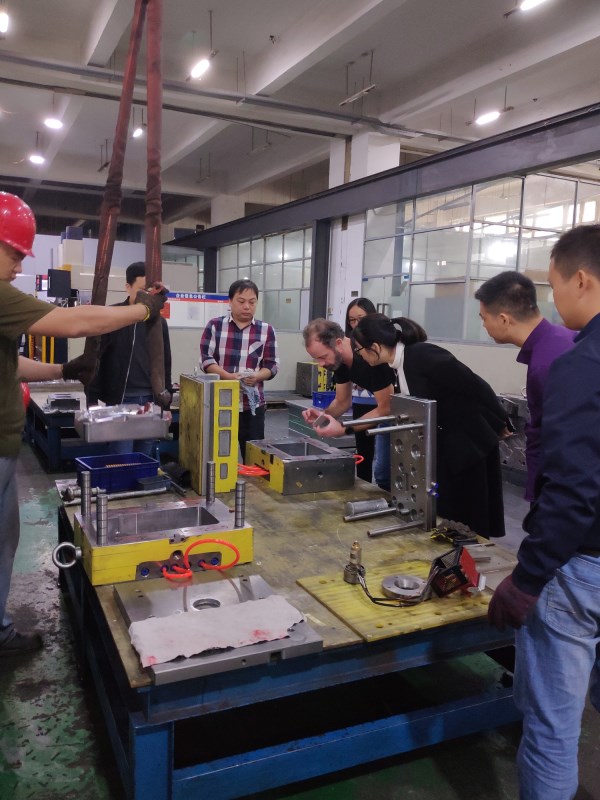 Customer is coming to check the molds quality & run the molds test before shipment, and they are very satisfied with the quality & service provided by Qiqiangsheng Moulds Co., Ltd.